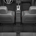 UNIVERSAL FIT - Designed to fit most vehicles, these flexible rubber floor mats mold to the shape of your car's interior. Front Measurements: 27" L x 20" W, Rear Mesurements: 51" L x 14" W